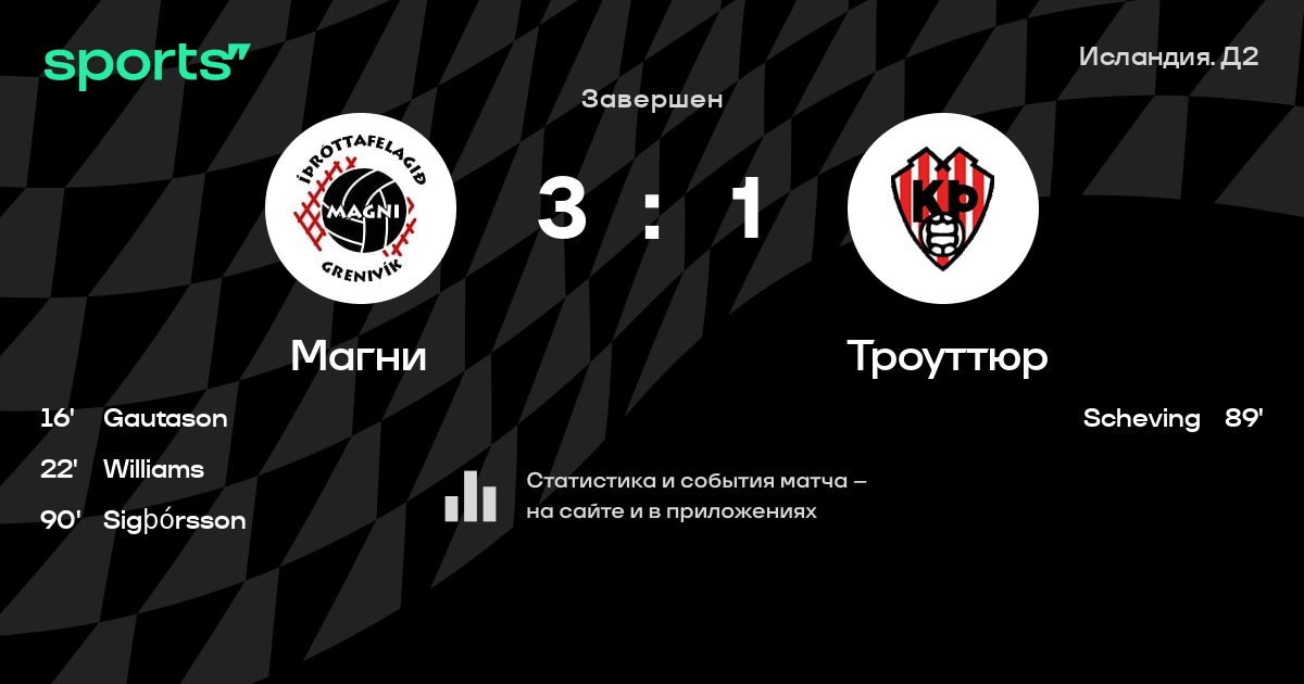 Auðunsson - Birgisson, Уордл, Sigurbjörnsson, Halldórsson, Gautason - Hafsteinsson, Williams, Petursson, Sigþórsson - RósbergssonЗапасные: Arnþórsson, Stefansson, Jessen, Búason, Heiðarsson, Gautason, Sverrisson