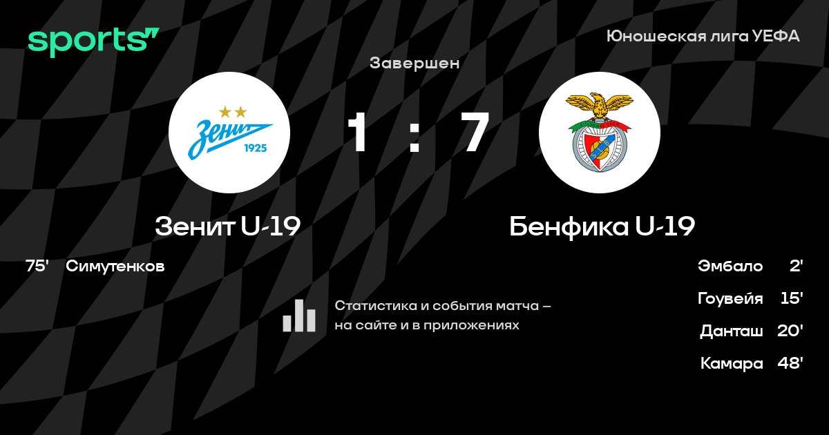 Трансляция Зенит U-19 - Бенфика U-19