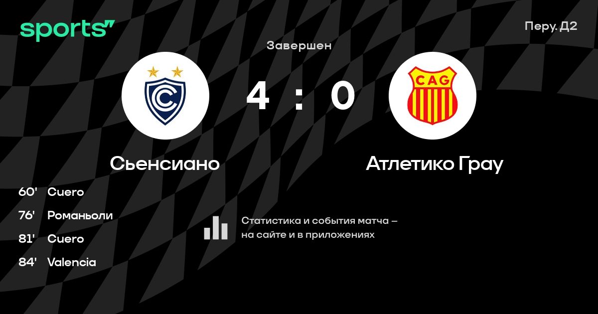 Барбиери - Саласар, Монтесинос, Рейес - Гарсия, Молина, Паломино, Cuero, Кунчо - Valencia Olaya, Романьоли