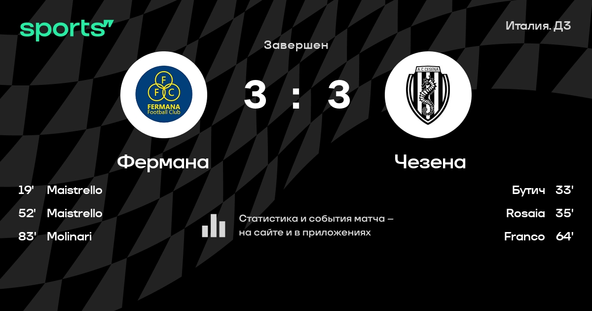 Паломбо - Scrosta, Comotto, Сперотто - Риччарди, Bellini, Iotti, Persia, Bacio Terracino, Mantini - MaistrelloЗапасные: Джемелло, Вентури, De Pascalis, Manetta, Мане, Isacco, Д`Анджело, Fiumicetti, Alagna, Rolfini, Cognigni, Molinari