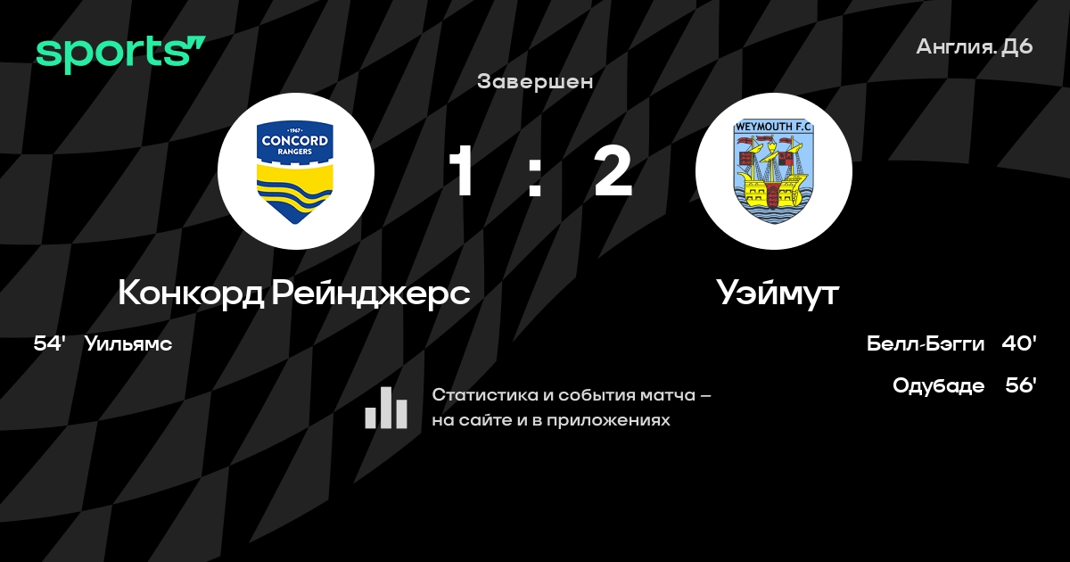 Конкорд Рейнджерс – Уэймут: коэффициенты