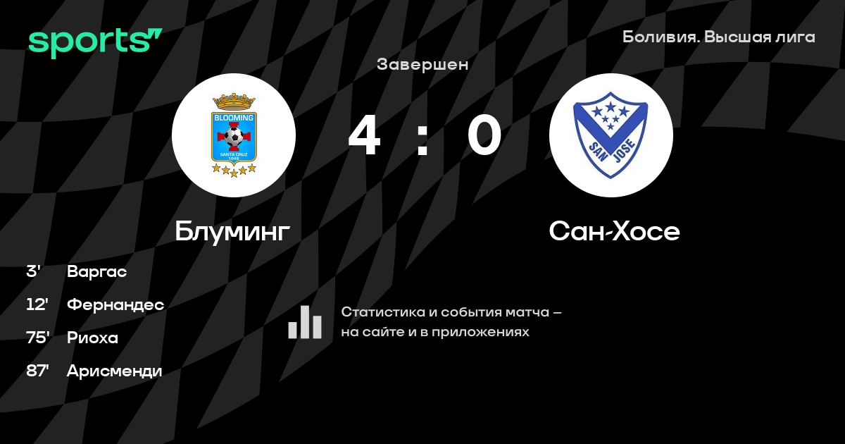Нова - Токо, Торрико - Веласко, Томас, Маркиньо, Видаурре, Гомес, Овандо, Сехас - АбастофлорЗапасные: Кареага, Мена, Бильбао, Кондори, Аньес, Серрано, Fernandez Mollo
