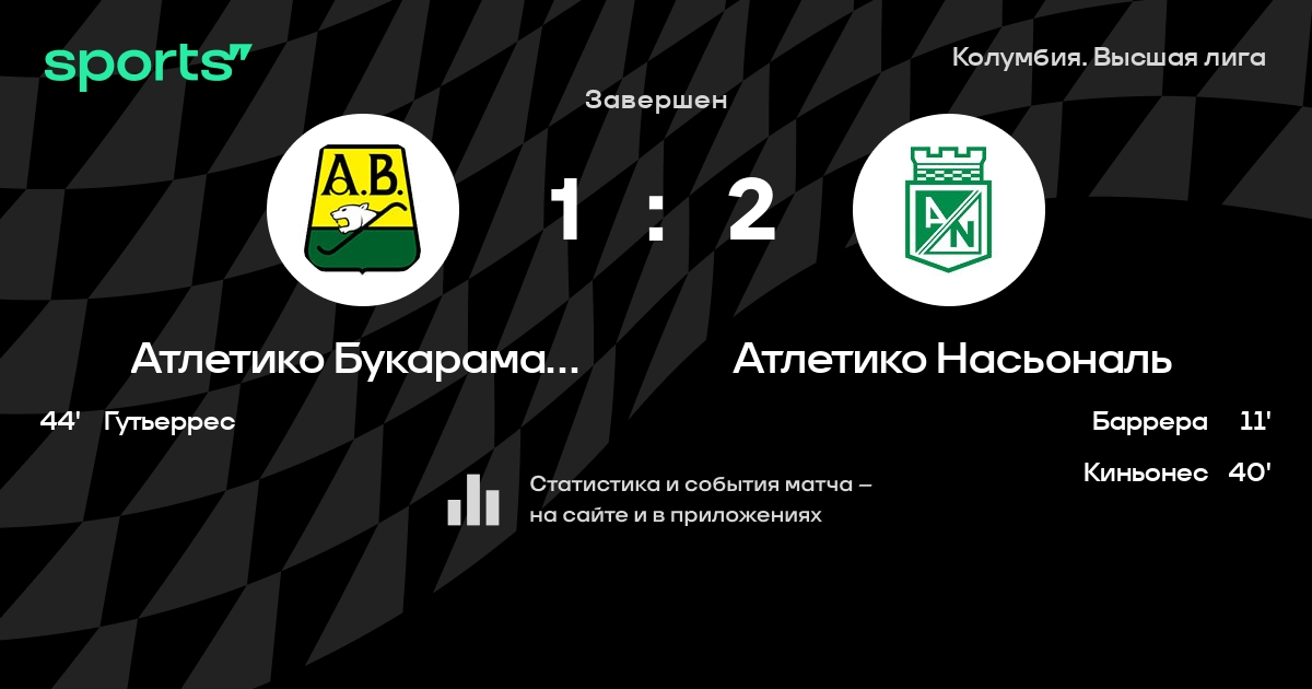 Трансляция Атлетико Букараманга - Атлетико Насьональ
