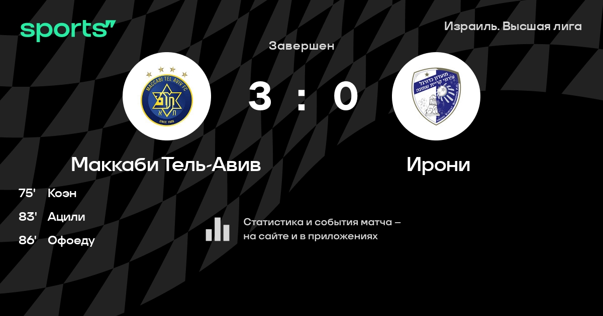 Маккаби Тель-Авив – Ирони: коэффициенты
