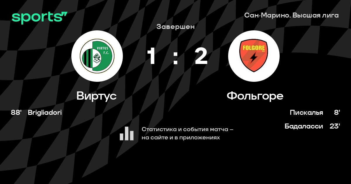 | 6 | Виртус | 8 | 2 | 1 | 5 | 14 | 18 | -4 | 7 | ||