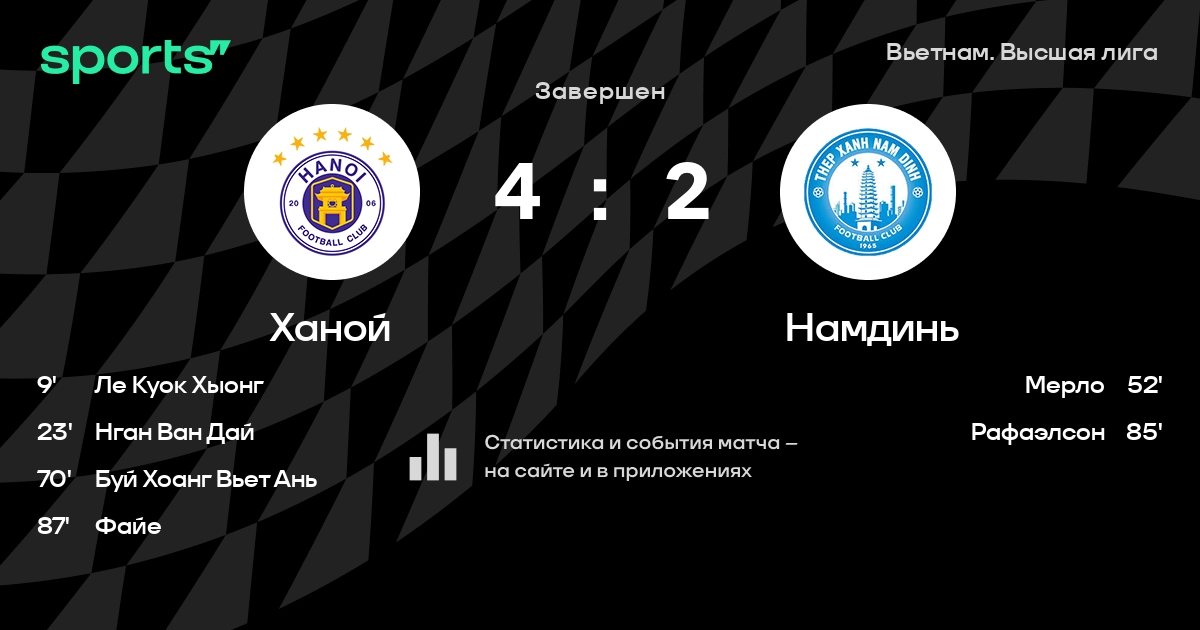Динь Суан Вьет - Ле Куок Хыонг, Агбаджи, Лам Ань Куанг, Динь Ван Чыонг - Хоанг Суан Тан, Зунграна, Май Суан Куйет - Мерло, Хоанг Минь Туан, РафаэлсонЗапасные: Чан Льем Дьеу, Чан Мань Кыонг, Нго Дык Хюи, Чан Мань Хунг, Доан Тхань Чыонг, Ле Ши Минь, Фам Хонг Шон, Фам Ван Хьеу, Нгуен Динь Мань