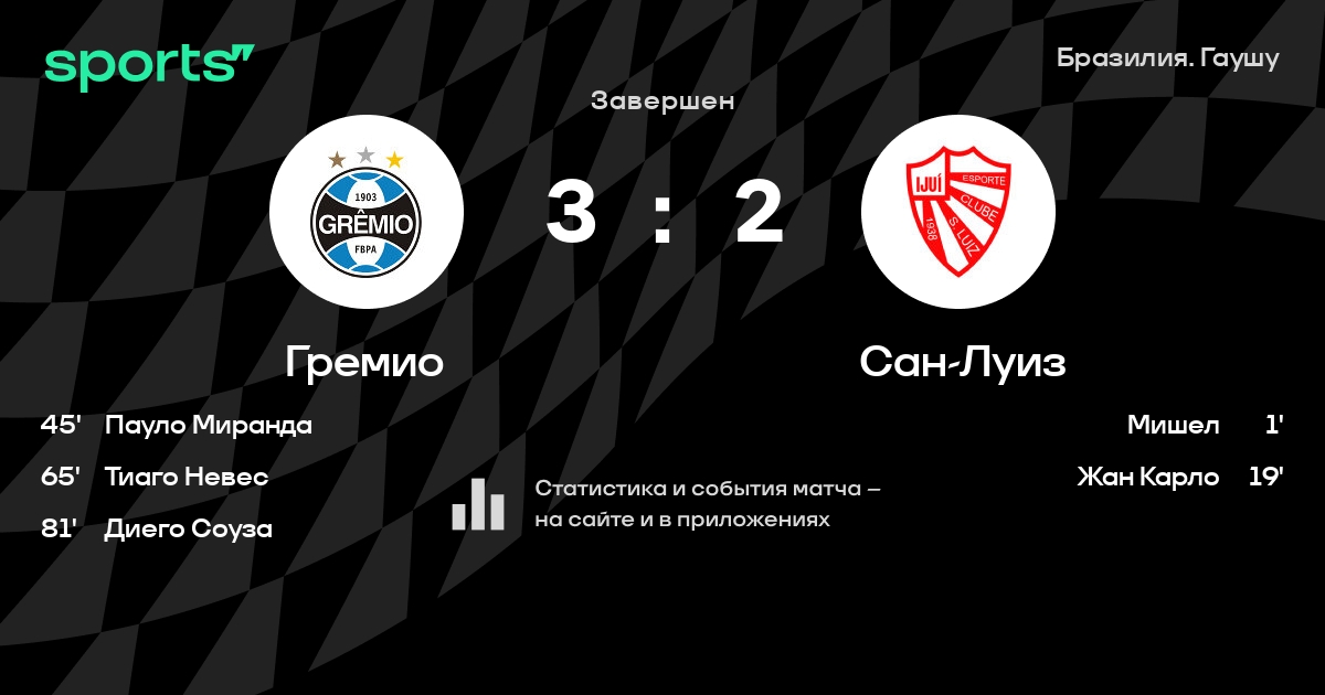 Вандерлей - Кортес, Пауло Миранда, Каннеманн, Орехуэла - Тиаго Невес, Тасиано, Матеус Энрике - Пепе Акино, Эвертон, ЛусианоЗапасные: Пауло Виктор, Гедес, Тоньяо, Руан, Лукас Араужо, Жан Пьер, Фриззо, Патрик, Дарлан Мендес, Диего Соуза