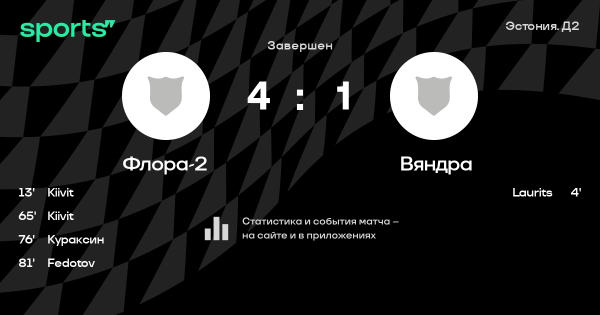 Veelmaa - Palts, Vaher, Vahermägi - Jermatšenko, Шейн, Timofejev, Paap, Fedotov - Iljin, KiivitЗапасные: Mõttus, Otti, Ustritski, Кураксин, Sild, Niit