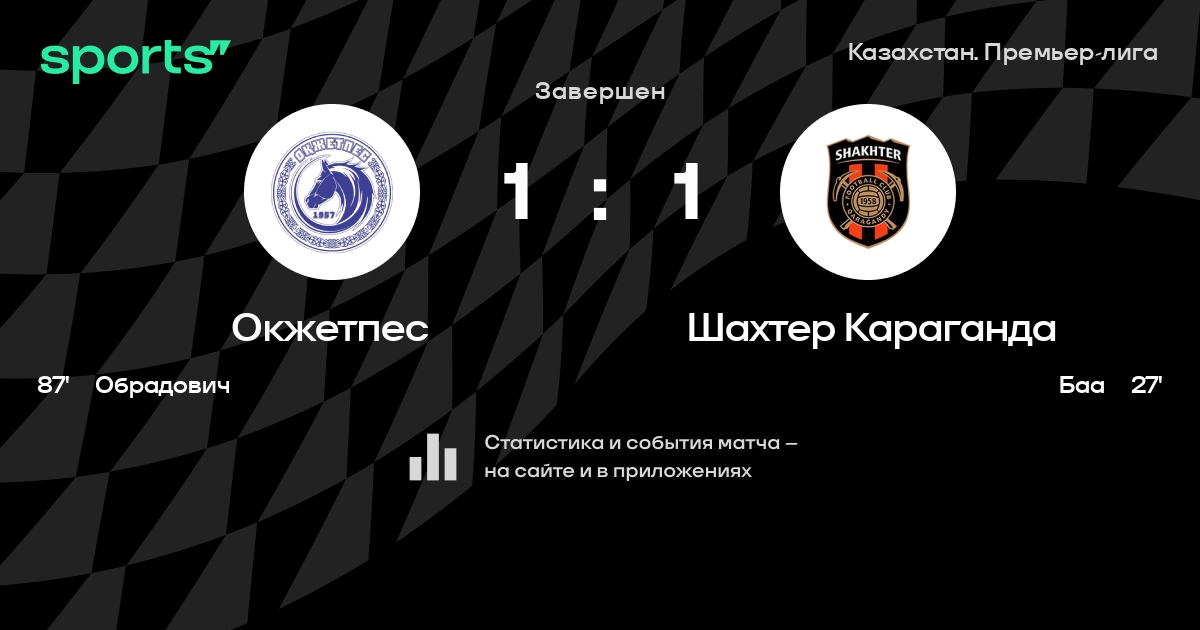 «Шахтер» сыграл вничью с «Окжетпесом». Оба гола были забиты со стандартов