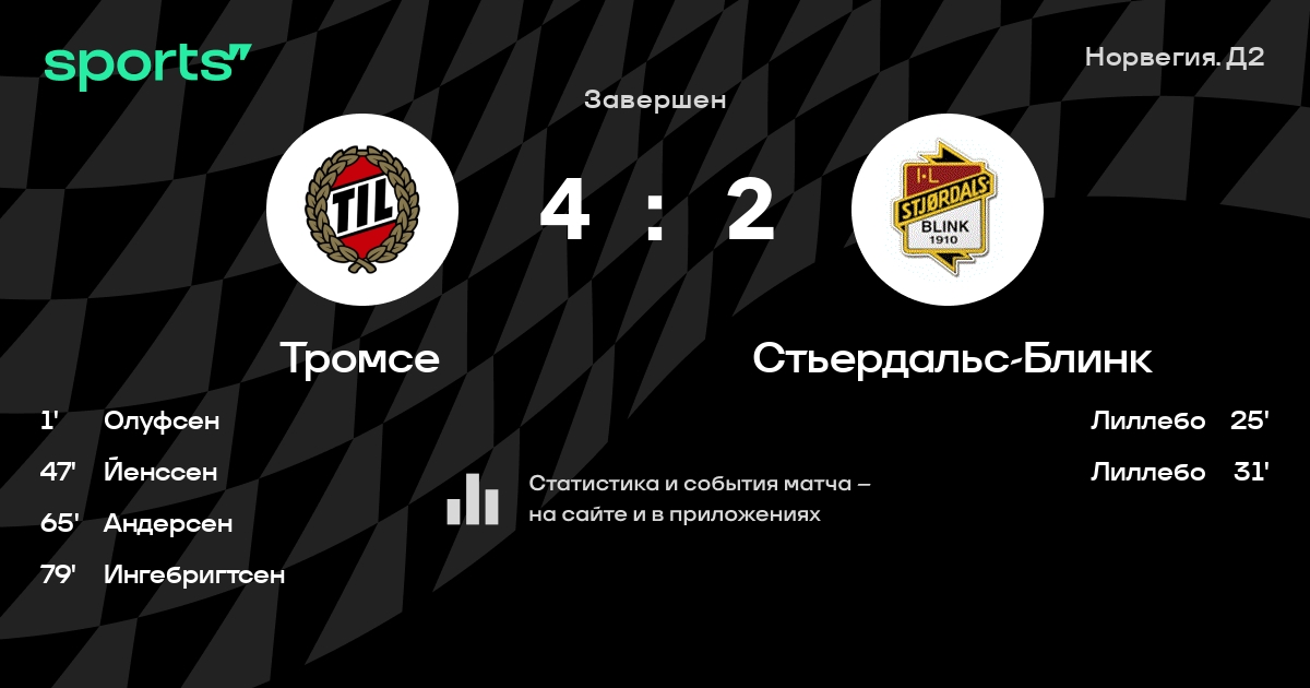 Карлстрем - Вангберг, Арнарсон, Сетра, Гундерсен - Антонсен, Нильсен, Бернтсен, Китолано, Йенссен - АсемиЗапасные: Якобсен, Йенссен, Андерсен, Хансен-Ороэн, Опсаль, Ингебригтсен, Hafstad, Ahamed