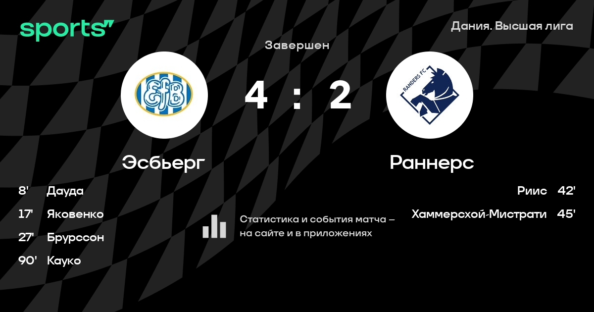 Манноне - Конбой, Реесе, Брурссон, Бринк - Кужава, Парунашвили, Кауко, Соренсен - Яковенко, ДаудаЗапасные: Хейбьерг, Анюэмбе, Хальсти, Сойри, Ларсен, Эгелунд, Эрцег