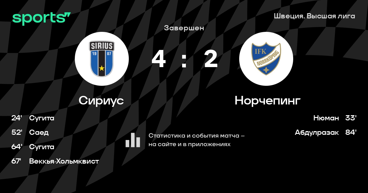 Петтерссон - Жерсон, Лауритсен, Дагерстоль, Кастегрен - Хакшабанович, Йоуханнессон, Смит, Франссон, Блумквист - НюманЗапасные: Судар, Бинаку, Тело, Абдулразак, Кусу, Альмквист, Леви