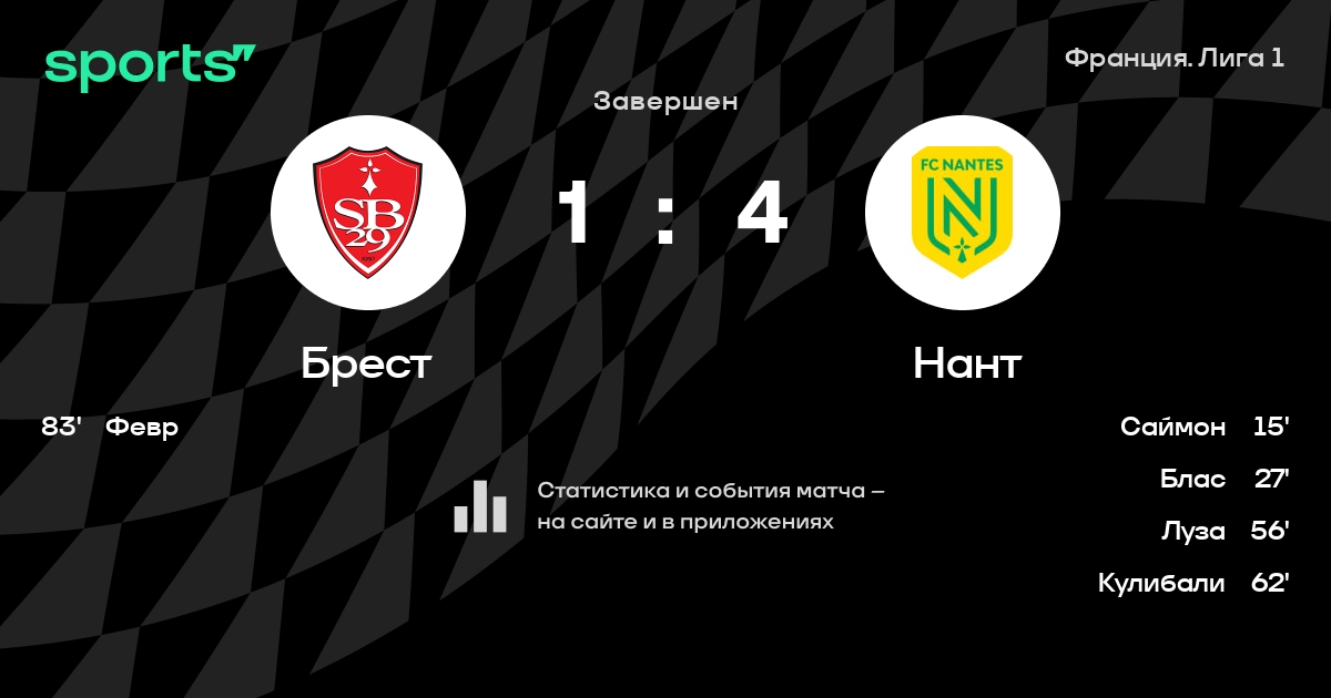 | 1 | Лилль | 38 | 24 | 11 | 3 | 64 | 23 | +41 | 83 | ||