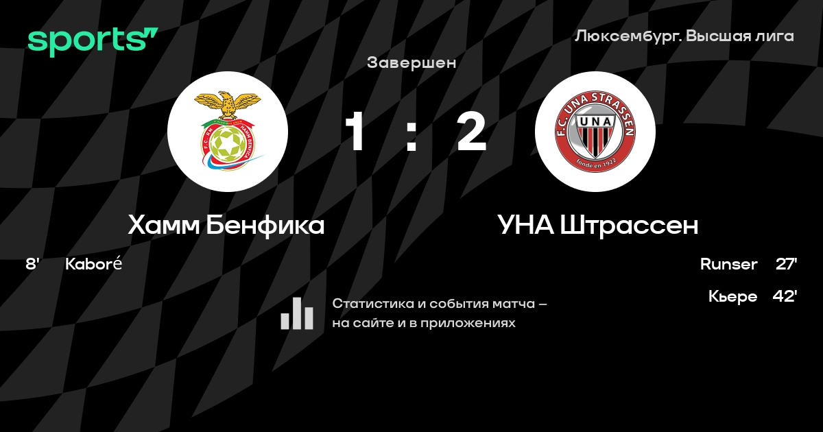 Хамм Бенфика – УНА Штрассен: УНА Штрассен забивает в 5 из 7 последних матчей против этого соперника