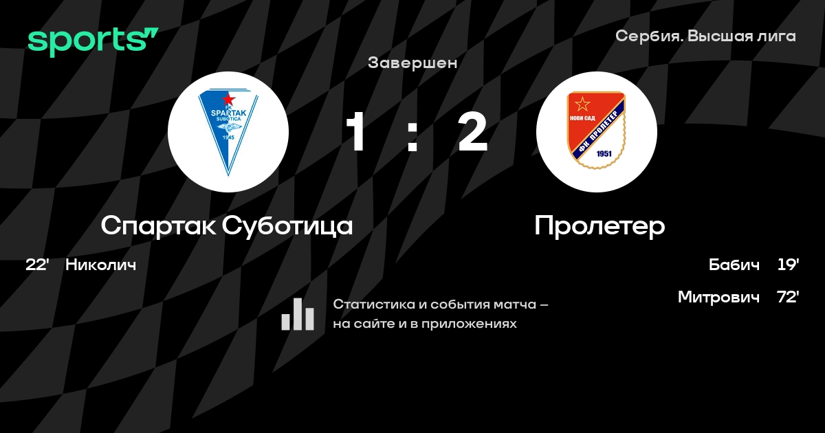 Трансляция Спартак Суботица - Пролетер