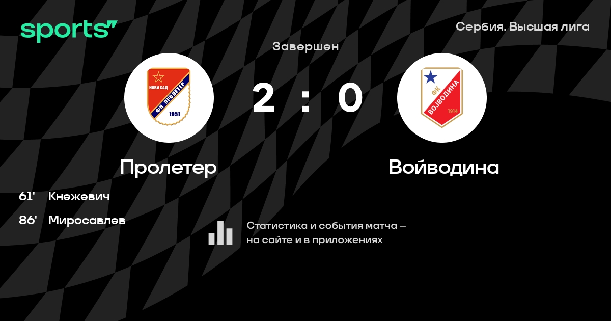 Пролетер – Войводина: Войводина не пропускает в 4 последних матчах против этого соперника