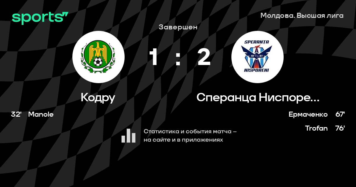 Кодру – Сперанца Ниспорены: Сперанца Ниспорены не пропускает в 4 последних матчах против этого соперника
