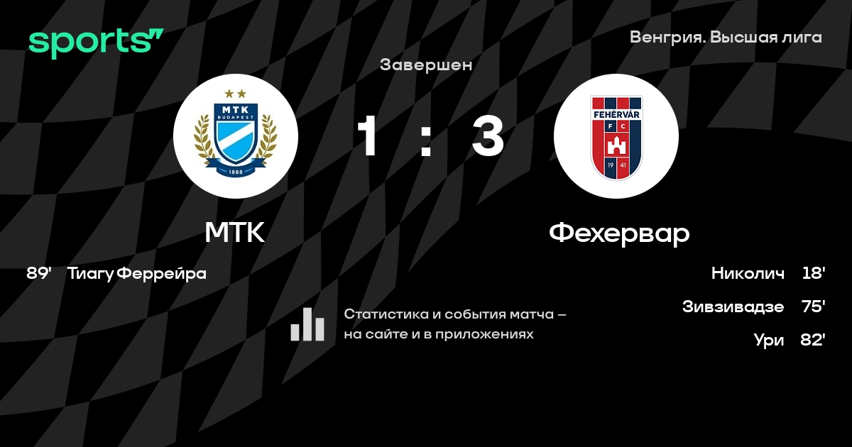 МТК – Фехервар: МТК побеждает в 3 последних очных матчах в турнире «Венгрия. Высшая лига»