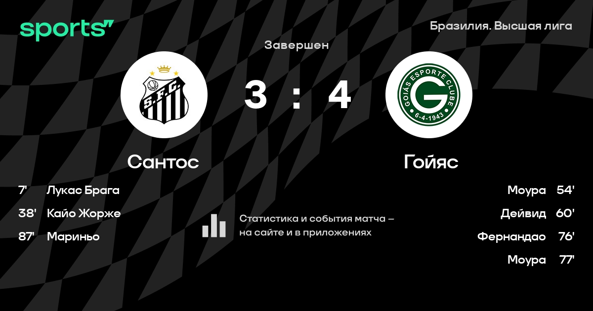 Сантос – Гойяс: Сантос побеждает в 4 последних очных матчах