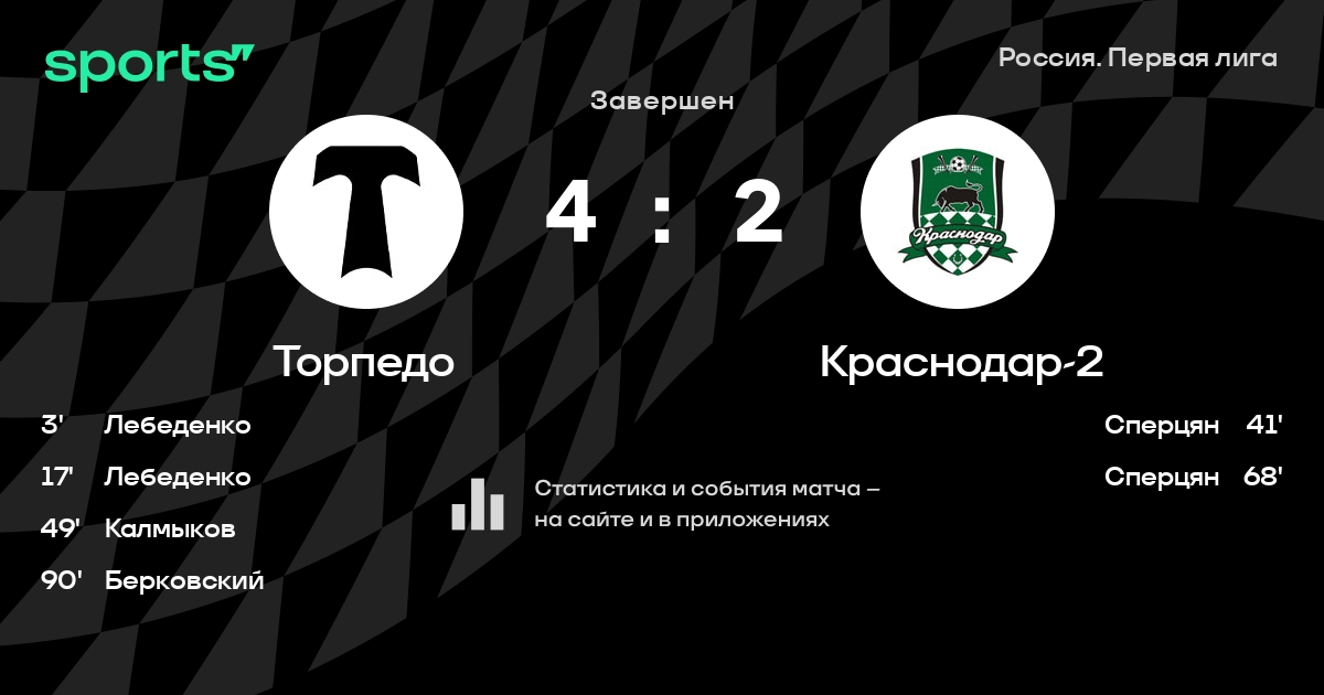 «КРАСНОДАР-2» Краснодар – «ТОРПЕДО» Москва: все расклады перед матчем