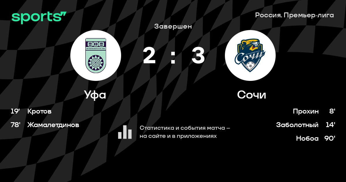 Уфа – Сочи: Сочи не проигрывает в 6 из 7 последних матчей против этого соперника