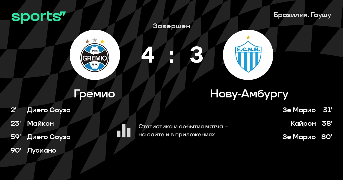 Вандерлей - Жеромел, Каннеманн, Гедес, Орехуэла - Жан Пьер, Майкон, Алиссон, Матеус Энрике - Эвертон, Диего СоузаЗапасные: Пауло Виктор, Браз, Изаке, Лукас Силва, Пепе Акино, Лусиано