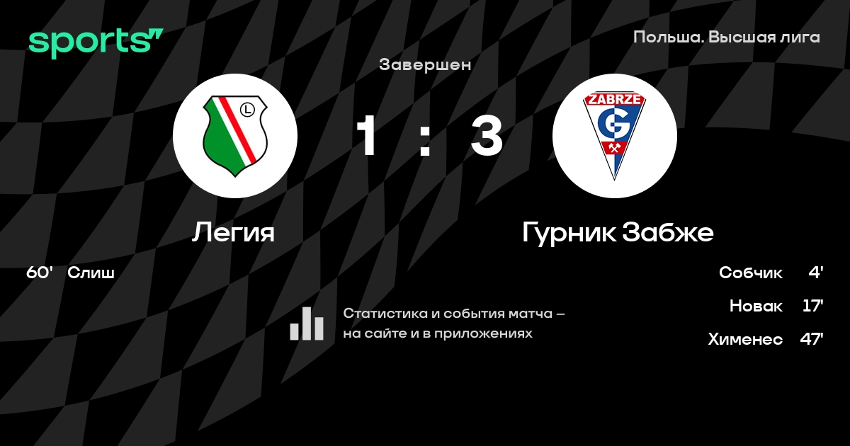 Трансляция Легия - Гурник Забже
