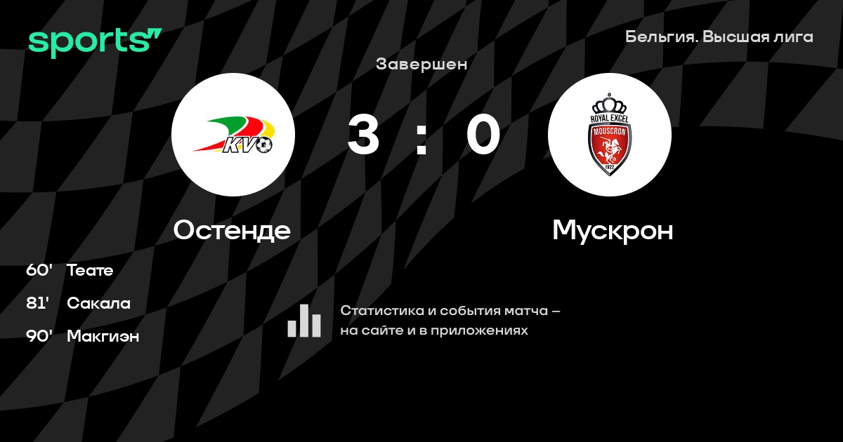 Юбер - Ндика, Теате, Хендри, Танге, Батай - Юльсагер, Д`Арпино, Вандендриссхе - Сакала, МакгиэнЗапасные: Кастро, Бонен, Batzner, Марке, Patoulidis, Скуласон, Квасина