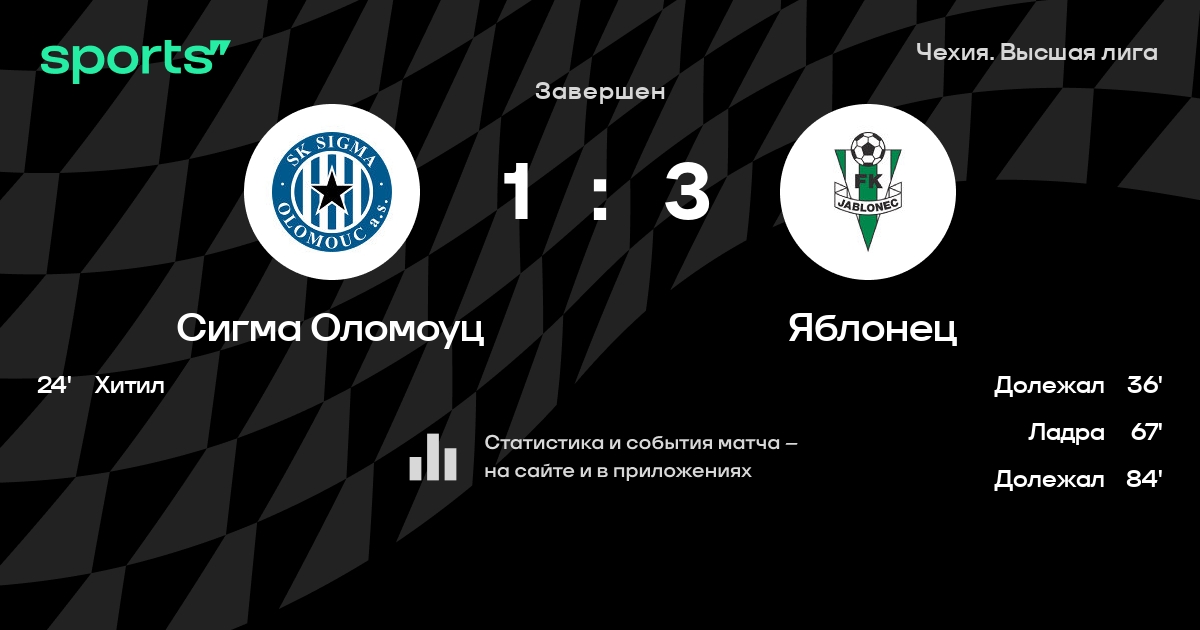 Трансляция Сигма Оломоуц - Яблонец