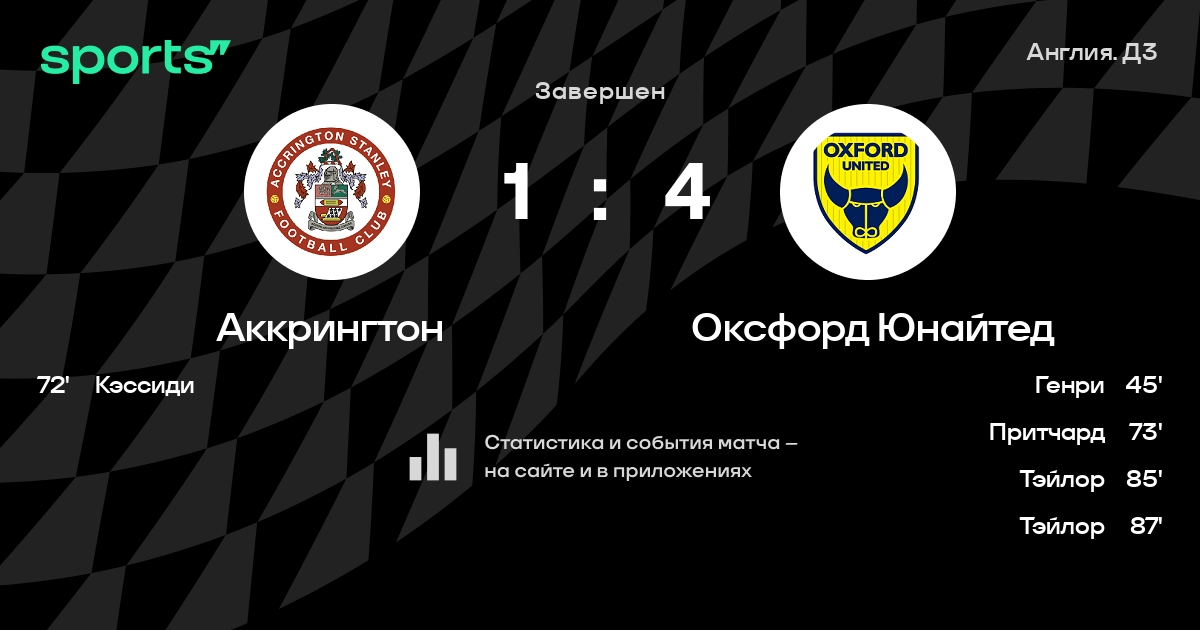 Трансляция Аккрингтон - Оксфорд Юнайтед
