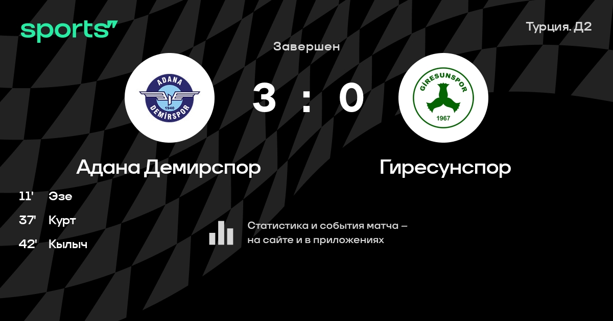 Адана Демирспор – Гиресунспор: Гиресунспор не проигрывает в 6 из 8 последних матчей против этого соперника в гостях в турнире «Турция. Д2».