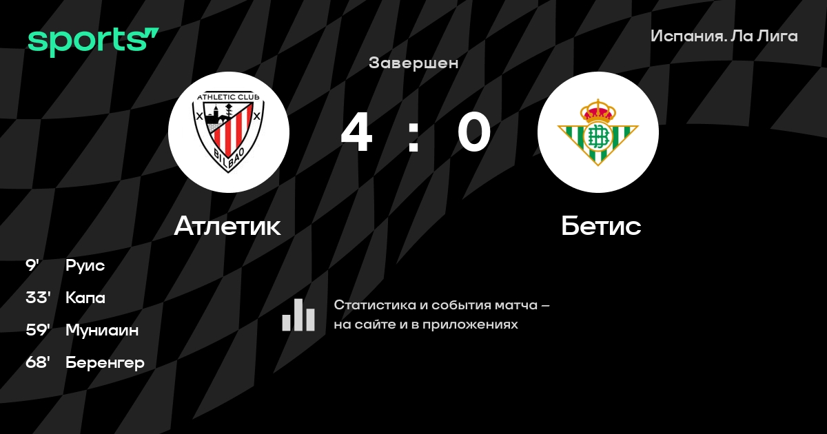 Чемпионат Испании. «Атлетик» забил 4 мяча «Бетису»