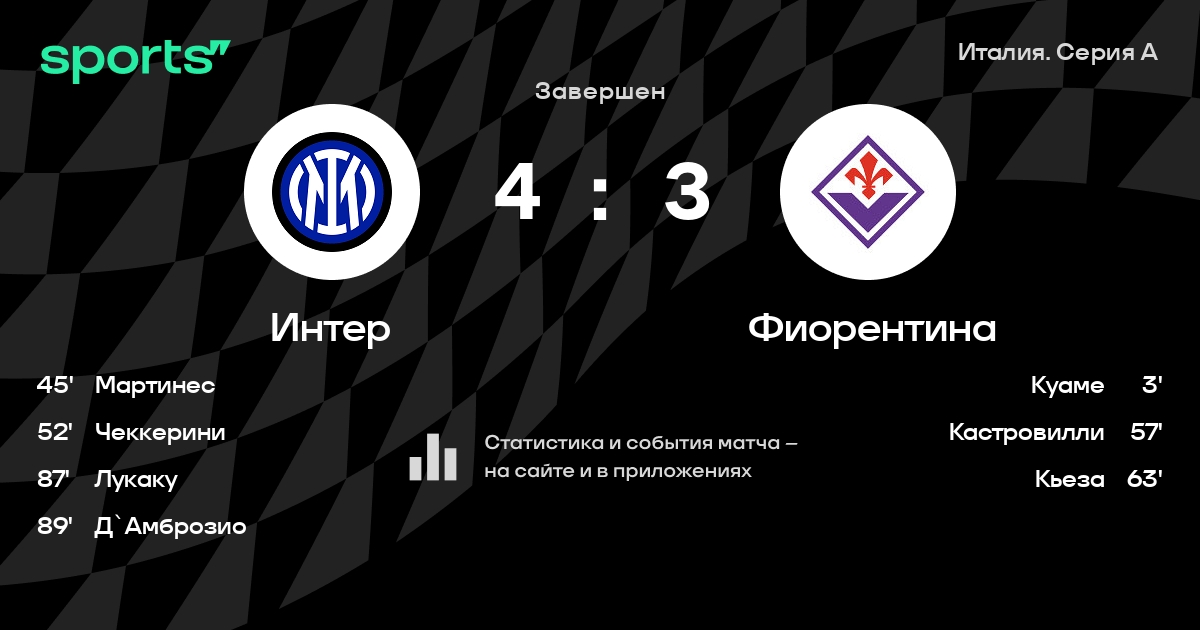 Интер - Фиорентина. 2 тур Серии А. Превью