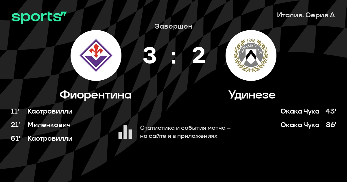 Николас - Самир, Де Майо, Родриго Бекао - Аувеян, Перейра, Арслан, Де Поль, Молина - Лазанья, Окака ЧукаЗапасные: Гаспарини, Скуффет, Бонифаци, Зегелар, тер Авест, Кулибали, Макенго, Уолас, Деулофеу, Форестьери, Несторовски, Пуссетто