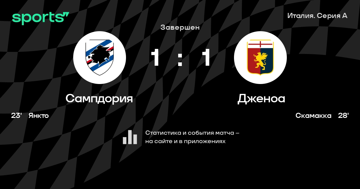 Перин - Кришито, Сапата, Гольданига, Бираски - Зайц, Пандев, Ровелла, Бадель, Лерагер - СкамаккаЗапасные: Маркетти, Палеари, Бани, Гильоне, Масьелло, Пеллегрини, Бехрами, Мелегони, Париджини, Дестро, Пьяца