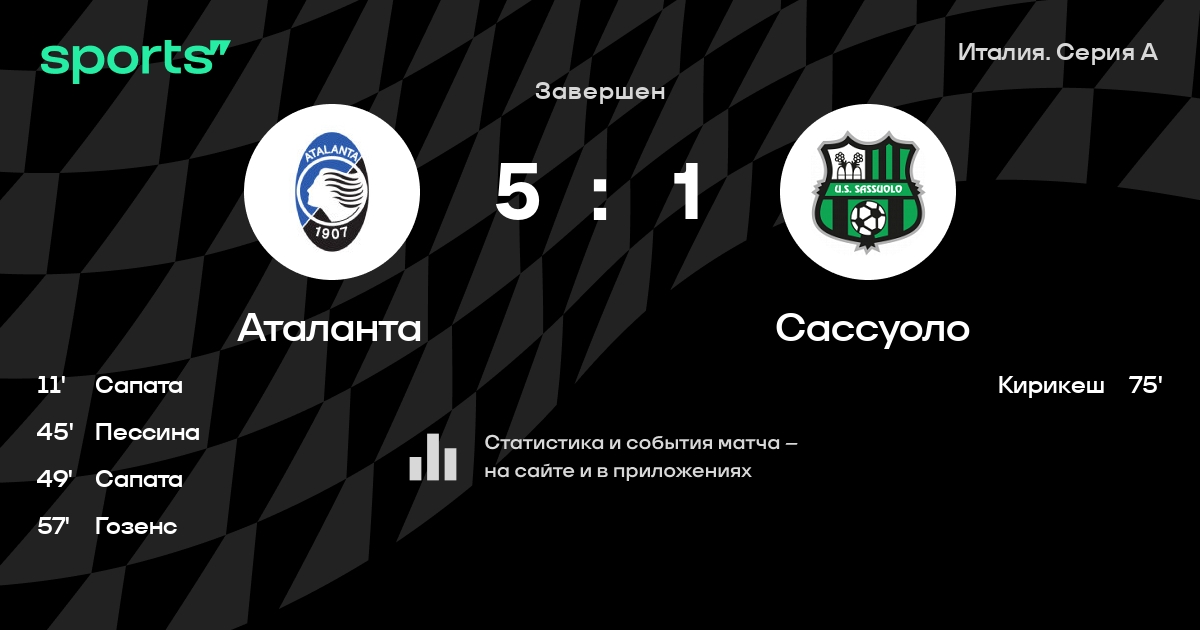 «Аталанта» разгромила «Сассуоло» (5:1). Миранчук вышел на замену на 84-й минуте