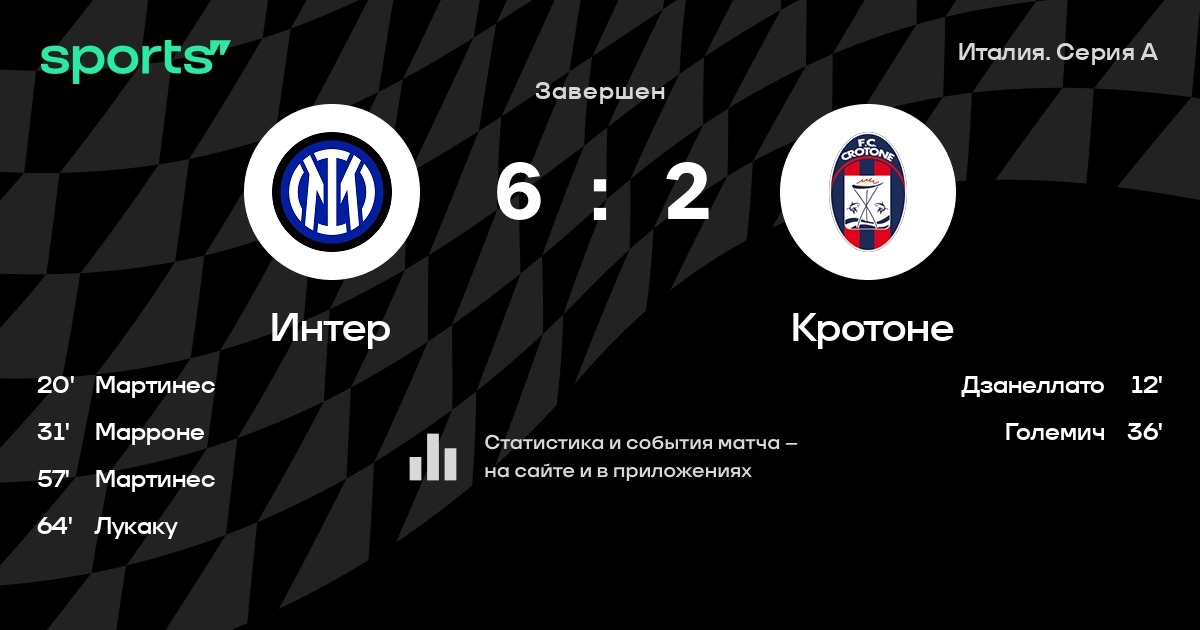 Ханданович - Бастони, де Врей, Шкриньяр - Янг, Видаль, Брозович, Барелла, Хакими - Мартинес, ЛукакуЗапасные: Паделли, Раду, Д`Амброзио, Дармиан, Раноккия, Эриксен, Гальярдини, Сенси, Перишич, Санчес