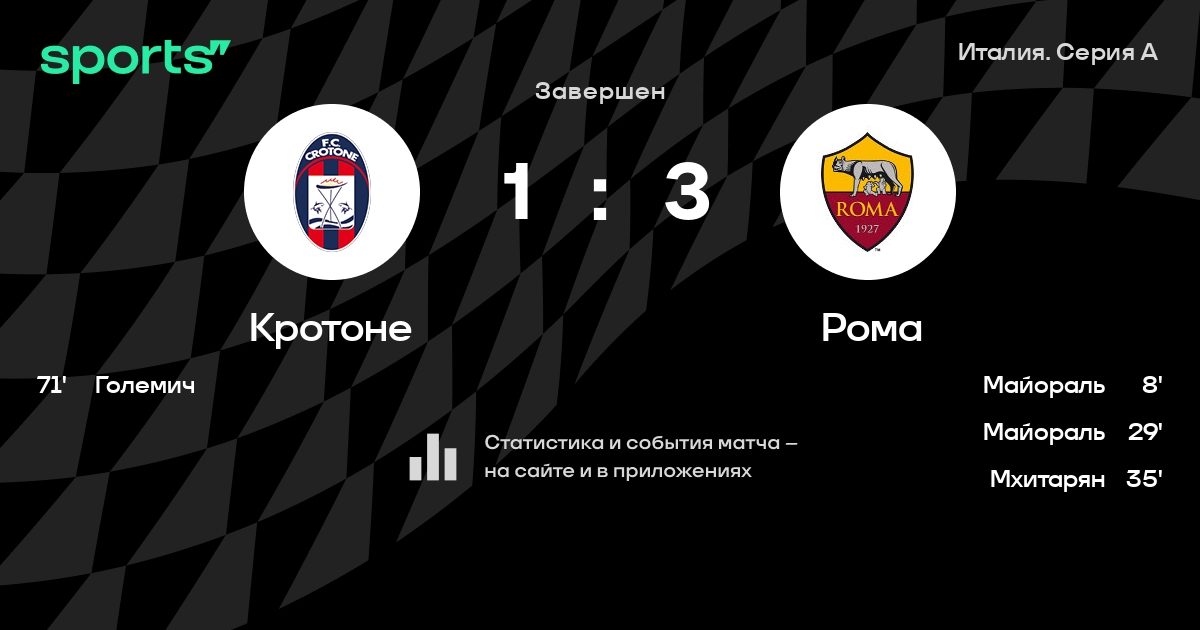 Лопес - Рожер, Смоллинг, Манчини - Бруно Перес, Мхитарян, Карлес Перес, Кристанте, Вильяр, Карсдорп - МайоральЗапасные: Боер, Фарелли, Кумбула, Жезус, Диавара, Пеллегрини, Верету, Джеко, Подгоряну, Провиденс