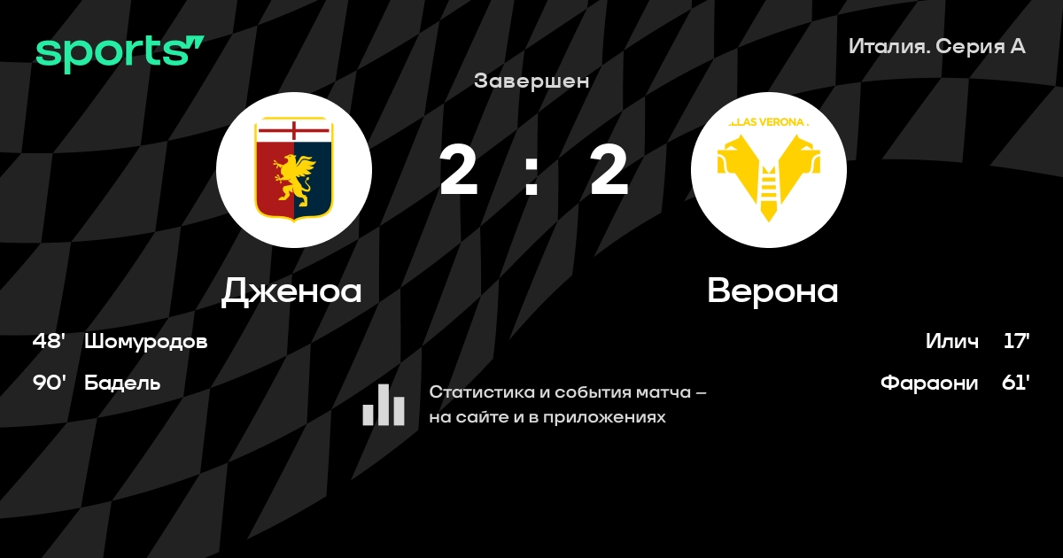 Перин - Кришито, Масьелло, Радованович - Чиборра, Стротман, Бадель, Зайц, Дзаппакоста - Пьяца, ДестроЗапасные: Маркетти, Гильоне, Гольданига, Онгене, Пеллегрини, Бехрами, Мелегони, Портанова, Ровелла, Пандев, Скамакка, Шомуродов