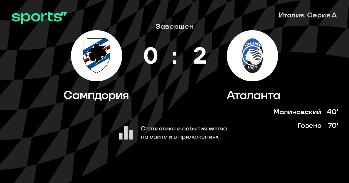 «Аталанта» обыграла «Сампдорию» (2:0). Миранчук вышел на 83-й минуте