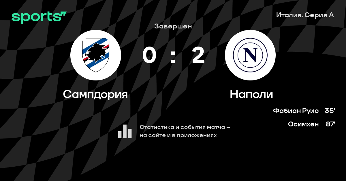 Оспина - Мариу Руй, Кулибали, Манолас, Ди Лоренцо - Демме, Фабиан Руис, Зелиньски, Инсинье, Политано - ОсимхенЗапасные: Контини-Барановский, Мерет, Хюсай, Максимович, Ррахмани, Бакайоко, Элмаз, Лоботка, Чиоффи, Лосано, Мертенс, Петанья