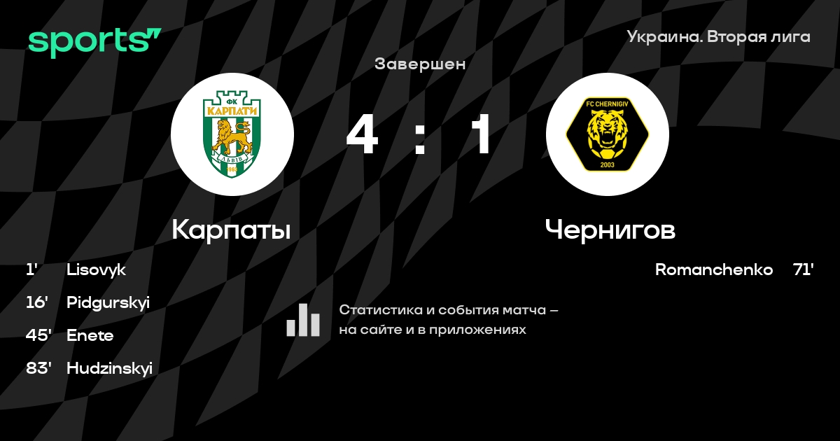 Карпаты – Чернигов: коэффициенты