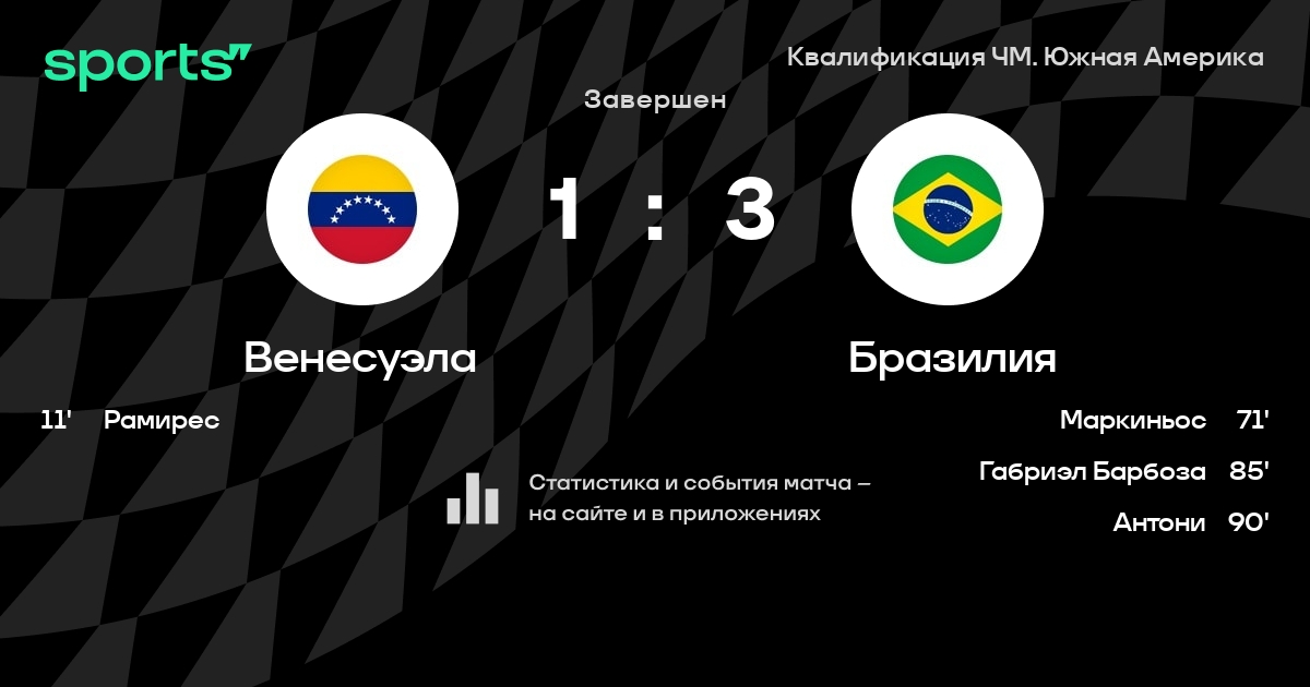 Венесуэла – Бразилия: Бразилия не проигрывает в 9 последних матчах против этого соперника