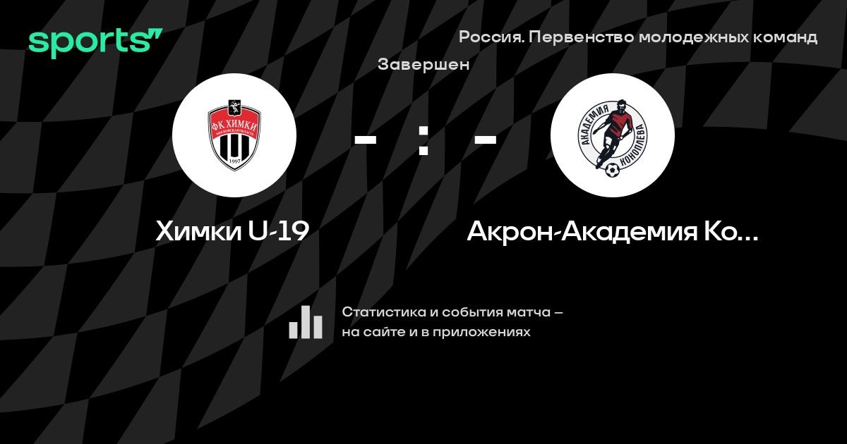 Химки U-19 – Акрон-Академия Коноплева U-19: коэффициенты