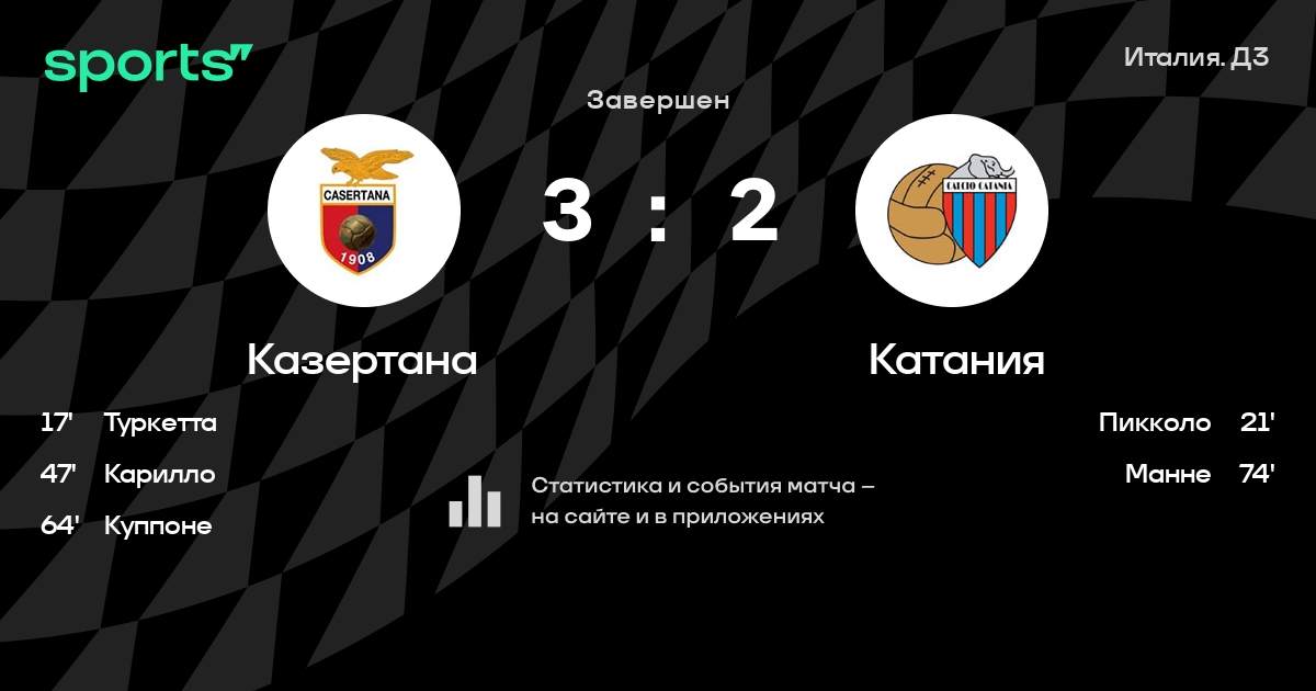 Avella - Конате, Карилло, Дель Гроссо, Hadziosmanovic - Иццилло, Santoro, Туркетта, Икарди, Пачилли - КуппонеЗапасные: Живкович, Сетола, De Vivo, Вало, Чирьелло, Полито, De Lucia, Петруччелли, Matese