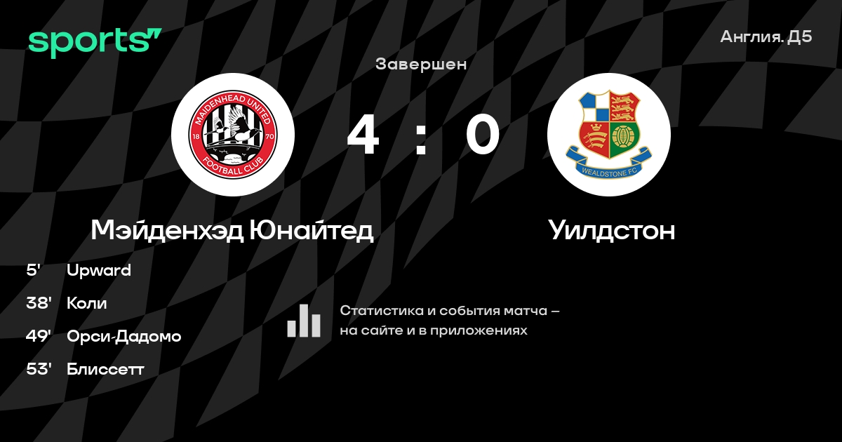 Мэйденхэд Юнайтед – Уилдстон: коэффициенты