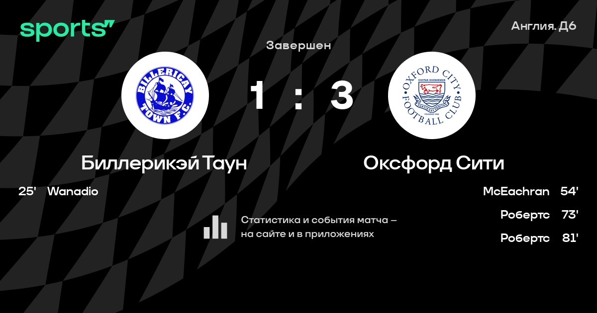 Трансляция Биллерикэй Таун - Оксфорд Сити