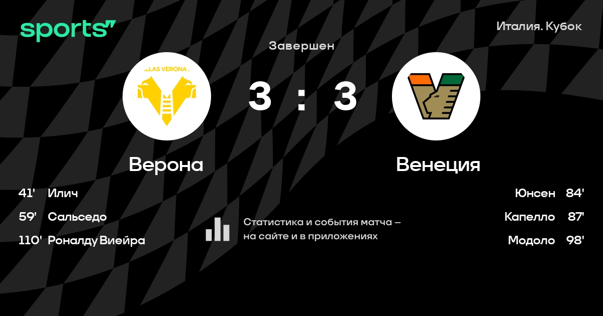Пандур - Маньяни, Рюэгг, Фараони, Алан Эмперор - Роналду Виейра, Илич, Дзакканьи, Лазович, Барак - СальседоЗапасные: Берарди, Сильвестри, Bracelli, Амионе, Удоджи, Давидович, Терраччано, Димарко, Тамез, Пьеробон, Канчельери, Колли