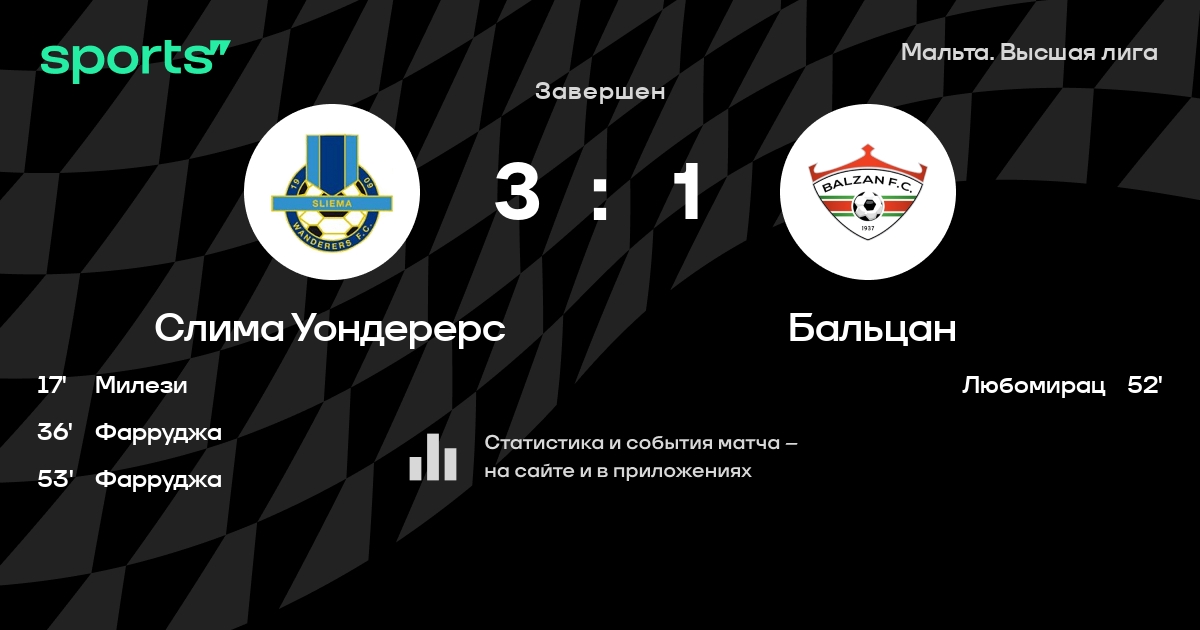 Vranješ - Лоф, Араб, Джонсон, Kamara - Пизани, Любомирац, Фенек - Jalu, Маквудс, УэвертонЗапасные: Catania Gilson, Camilleri, Беццина, Grima, Frendo, Чиприотт, Эффионг