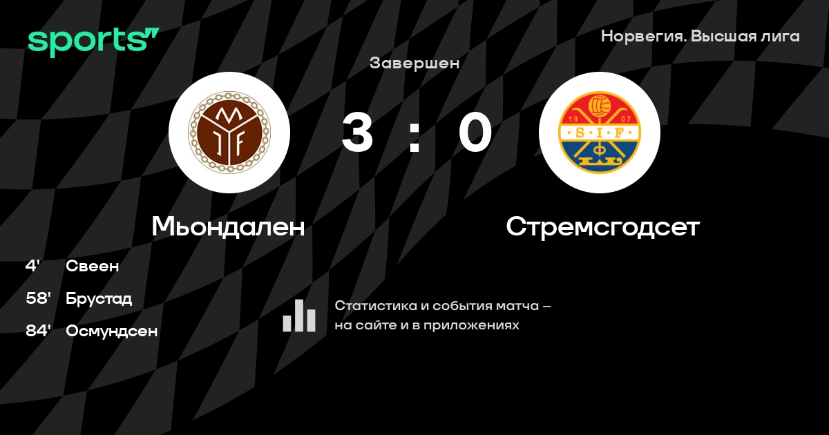 Макани - Драгснес, Йохансен, Накким, Eriksen - Реннинг, Геусет, Свеен, Твум, Брустад - ЛисетЗапасные: Soares Vieira, Янсен, Солберг, Селль, Брокманн, Осмундсен, Хеллум, Ибрахим, Ларсен